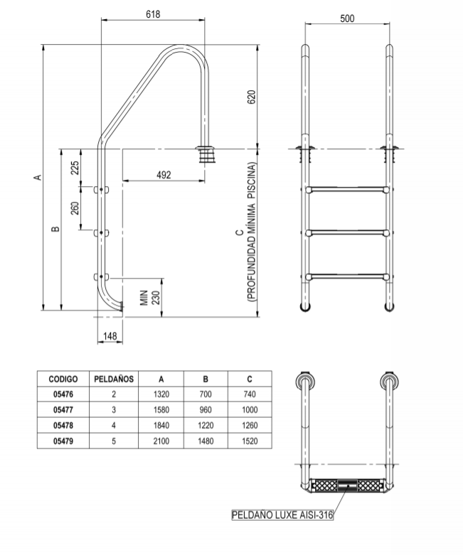 Merdevine Astral standard AISI 316 - 2 step.